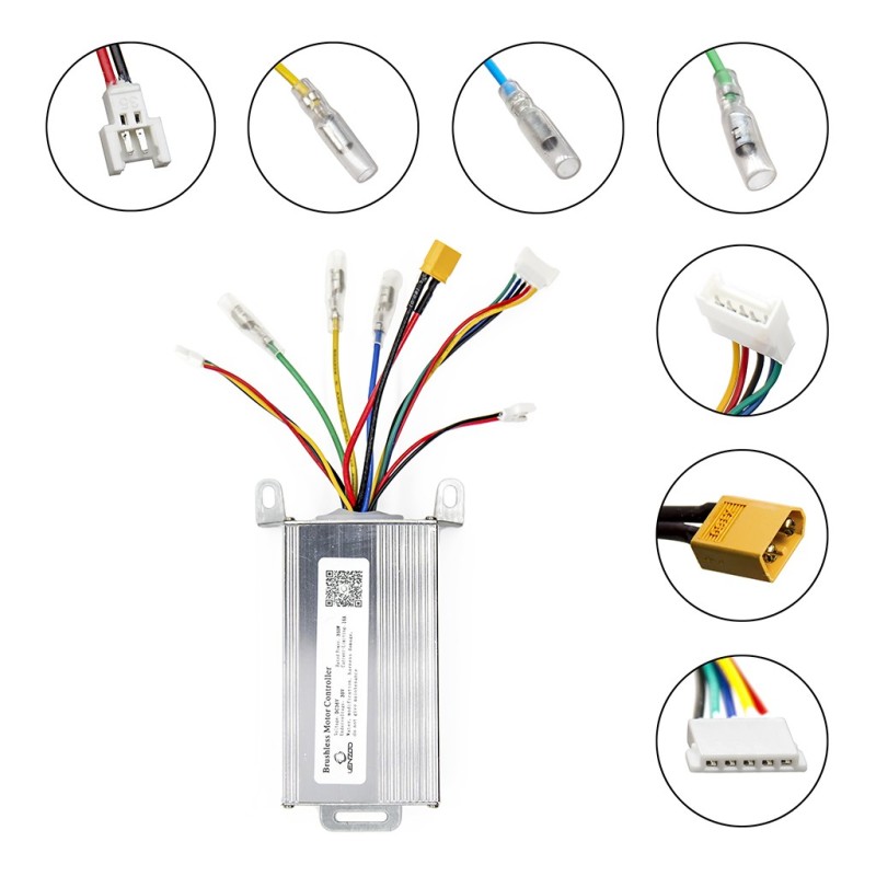 Kit electrónica genérico y Display 36V 16A 350W. Acelerador de pulgar, Cable de comunicación, Faro delantero, Luz de freno