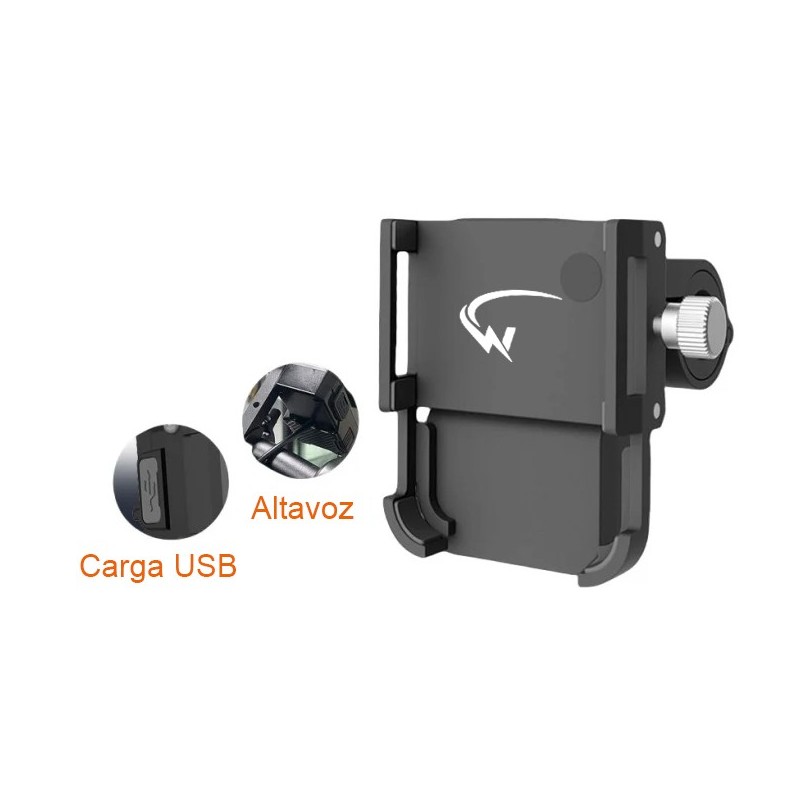 Soporte para móvil con Altavoz Bluetooth y carga USB para Patinete y Bicicleta.