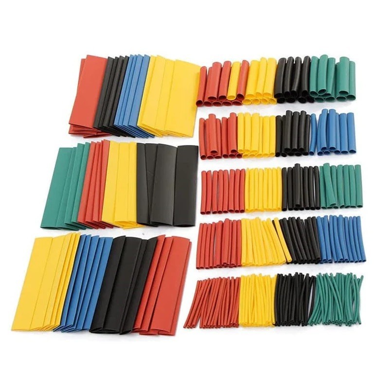 Kit de fundas de aislamiento termorretráctil. Muy adecuado para fijación de cables rotos, aislamiento eléctrico, protección mecánica, conexión de cables, extremos hilos/cables, reparaciones diarias, codificación de colores, etc. Poliolefina, buen aislamiento eléctrico.